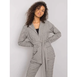 Šedobéžová kostkovaná dámská bunda.