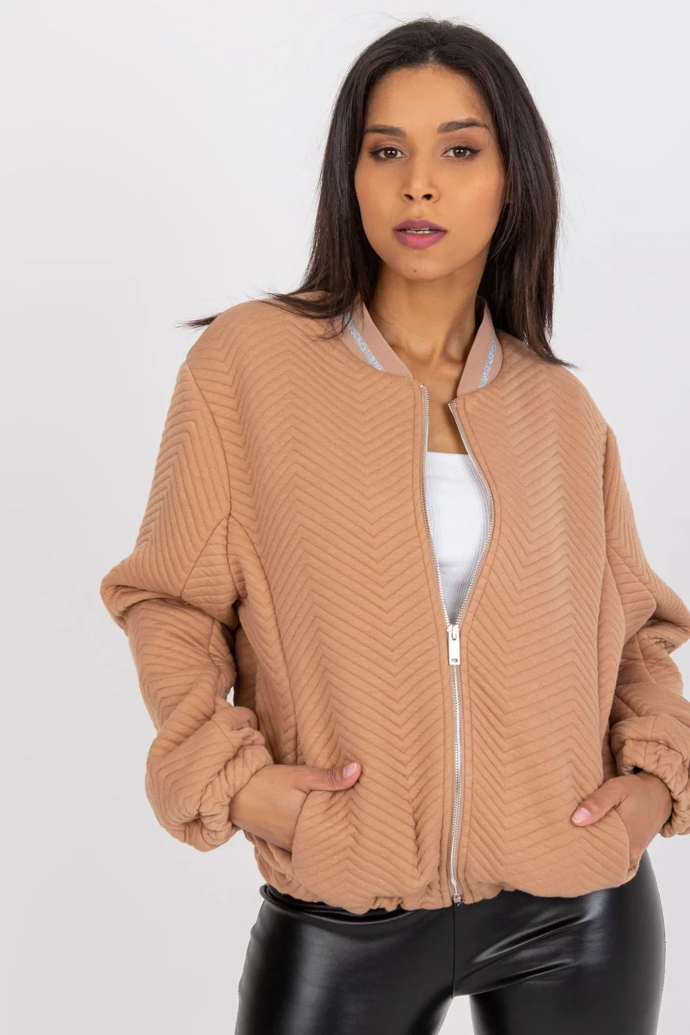 Dámská bunda s podšívkou ve velbloudí barvě je ideální volbou pro chladné dny. Je vyrobena z odolného materiálu ze 100% polyesteru. Model má kapsy, elastickou spodní část a žebrované manžety, které vám poskytnou spoustu možností stylingu. Multifunkční model, který se bude skvěle hodit pro ležérní městský styl ke každodennímu oblečení.
