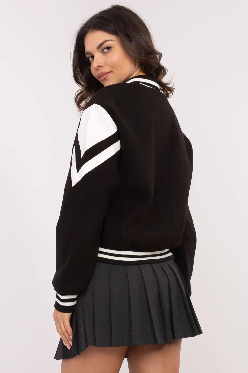 Elegantní bomber bunda je skvělou volbou na přechodné roční období, jako jsou podzim, zima a jaro. Vyrobena z polyesteru a vybavená podšívkou zajišťuje pohodlí a ochranu před chladem. Bunda standardní délky má dlouhý rukáv a praktické zapínání na knoflíky, co usnadňuje použití a zdůrazňuje její sportovní charakter. Kapsy se zipem zajišťují funkčnost a nášivka vpředu dodává jemný akcent, celkově vytvářející moderní vzhled. Hladký vzor činí z bundy univerzální kus oblečení, který se skvěle hodí do každodenních outfitů. Je to ideální volba pro ženy, které ocení pohodlí, funkčnost a styl.