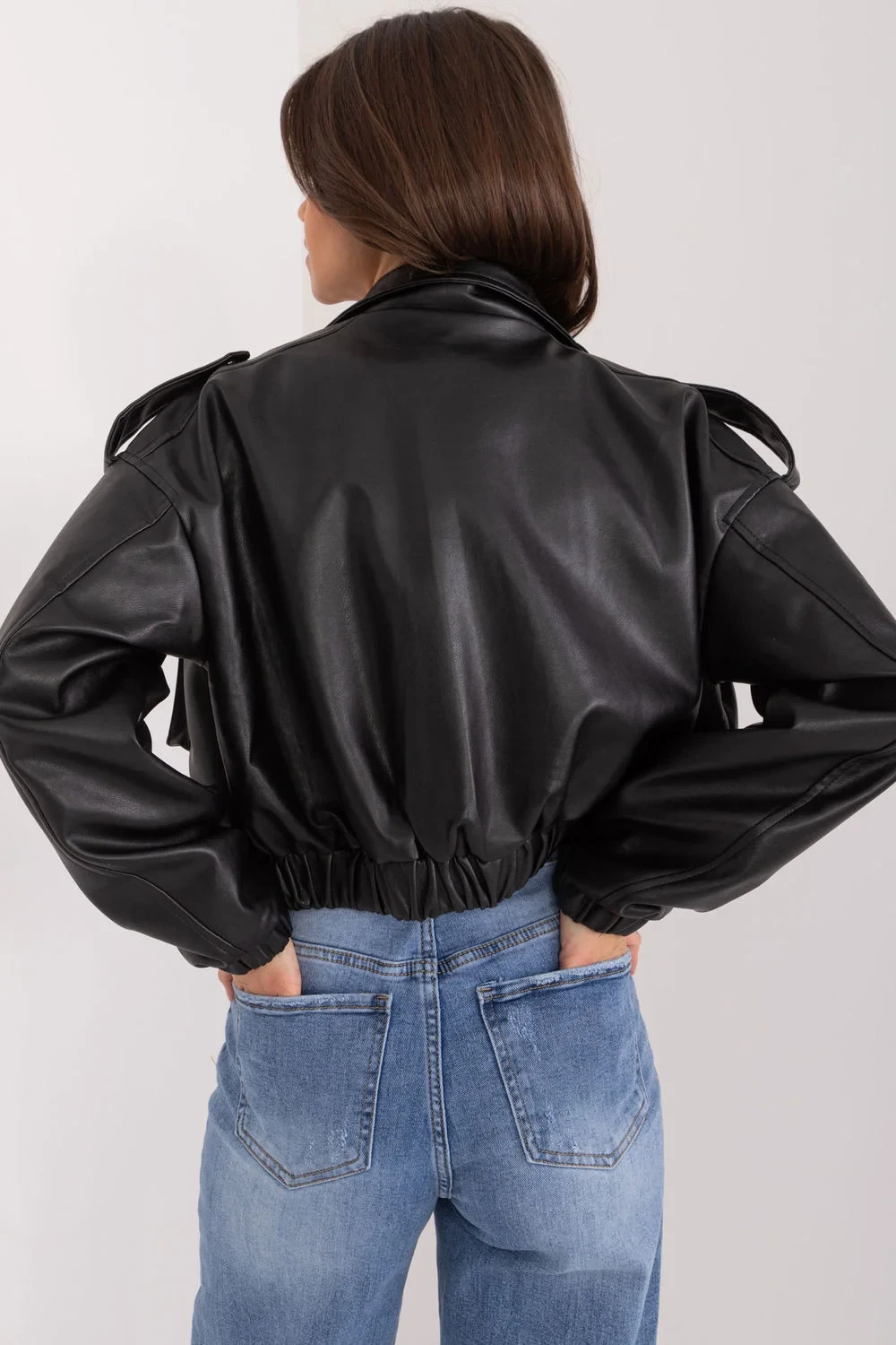 Dámská přechodná bunda z ekokože je skvělou kombinací stylu a funkčnosti. Vyrobená z vysoké kvality materiálů, jako je polyuretan, bavlna, viskóza a polyester, poskytuje pohodlí a odolnost. Její ležérní charakter a hladký vzor se skvěle hodí k každodenním outfitům. Krátký střih zvýrazňuje postavu a dlouhý rukáv zaručuje pohodlí v chladnějších dnech. Bunda se zapíná na zip zakrytý límcem na přezky, co jí dodává elegantní finiš. Praktické, velké nástřikové kapsy s klopnami zdůrazňují módní, užitkový styl a nárameníky dodávají celku charakter. Model má podšívku, což z něj dělá ideální volbu na přechodné období roku.