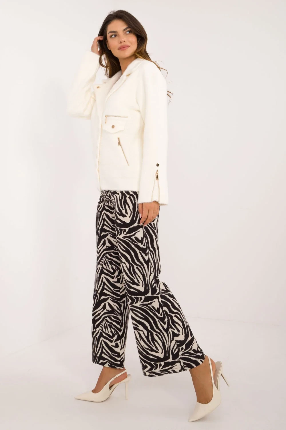 Elegantní a pohodlná dámská bunda ideální na chladnější dny. Její casualový charakter z ní dělá skvělý kousek na každý den, spojující styl s funkcionalitou. Bunda je vyrobena z směsi vysoce kvalitních materiálů, jako je vlna, polyester, viskóza a angora, což zaručuje její odolnost a pohodlí při nošení. Standardní délka, ideální pro každodenní outfit. Bunda se zapíná na suchý zip, kapsy jsou také na zip. Rukávy jsou zdobeny zipy, které jí dodávají moderní charakter. Tato bunda je skvělou volbou pro ženy, které ocení styl a pohodlí a hledají univerzální kousek do svého šatníku.