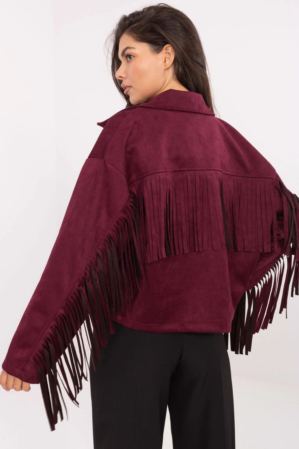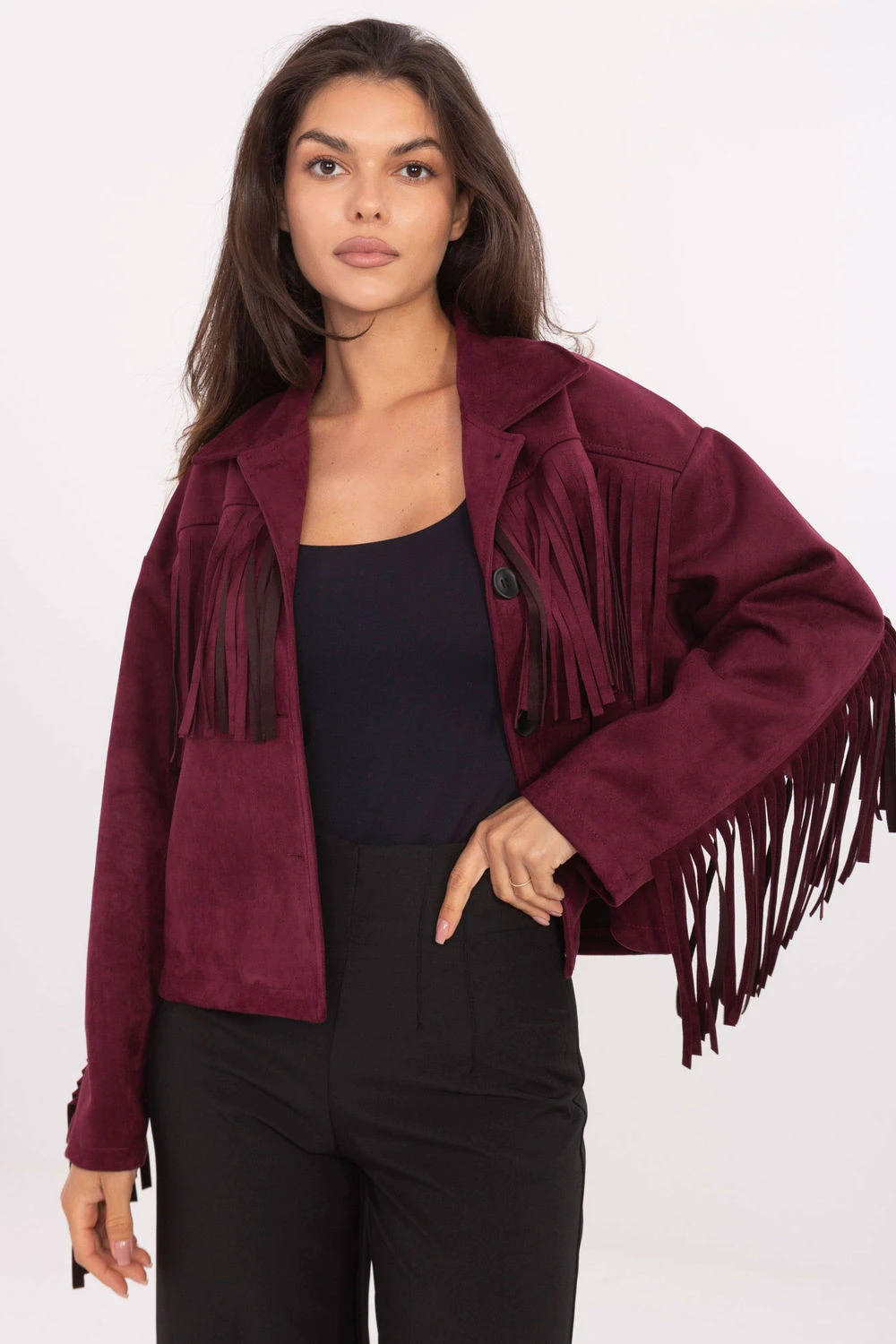 Krátká dámská přechodná bunda s casual charakterem, ideální pro každodenní outfit. Vyrobená z kombinace polyesteru a elastanu, poskytuje pohodlí a volnost pohybu. Hladká látka je doplněna módními řasami na rukávech, zádech a přední části, což dává celku výjimečný, stylový vzhled. Model s dlouhým rukávem, zapínání na knoflíky. Bundička bez podšívky, skvělá na podzim, zimu a jaro. Je to efektní kousek oblečení, který oživí každý každodenní outfit.