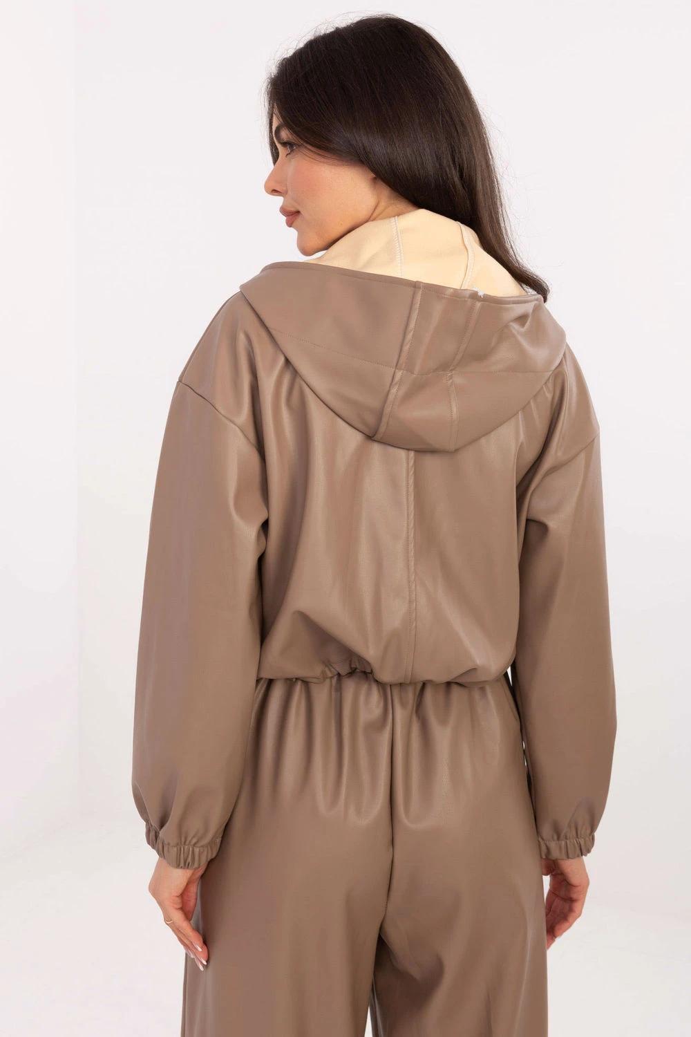 Elegantní krátká dámská bunda vyrobená z vysoce kvalitní ekokůže (směs polyesteru a polyuretanu), skvělá na podzim-zimu-jaro. Model se zapíná na zip, co zaručuje pohodlí a funkčnost každý den. Bunda má nášivky s kapsami, které jí dodávají charakter a praktičnost, a zateplení zajišťuje tepelný komfort v chladnějších dnech. Hladký vzor umožňuje snadné sladění s mnoha styly. Ideální volba v casual stylu, skvěle se hodí jako každodenní bunda ke kalhotám, rifle nebo šatům, zajišťující trendy vzhled a pohodlí v každé situaci.