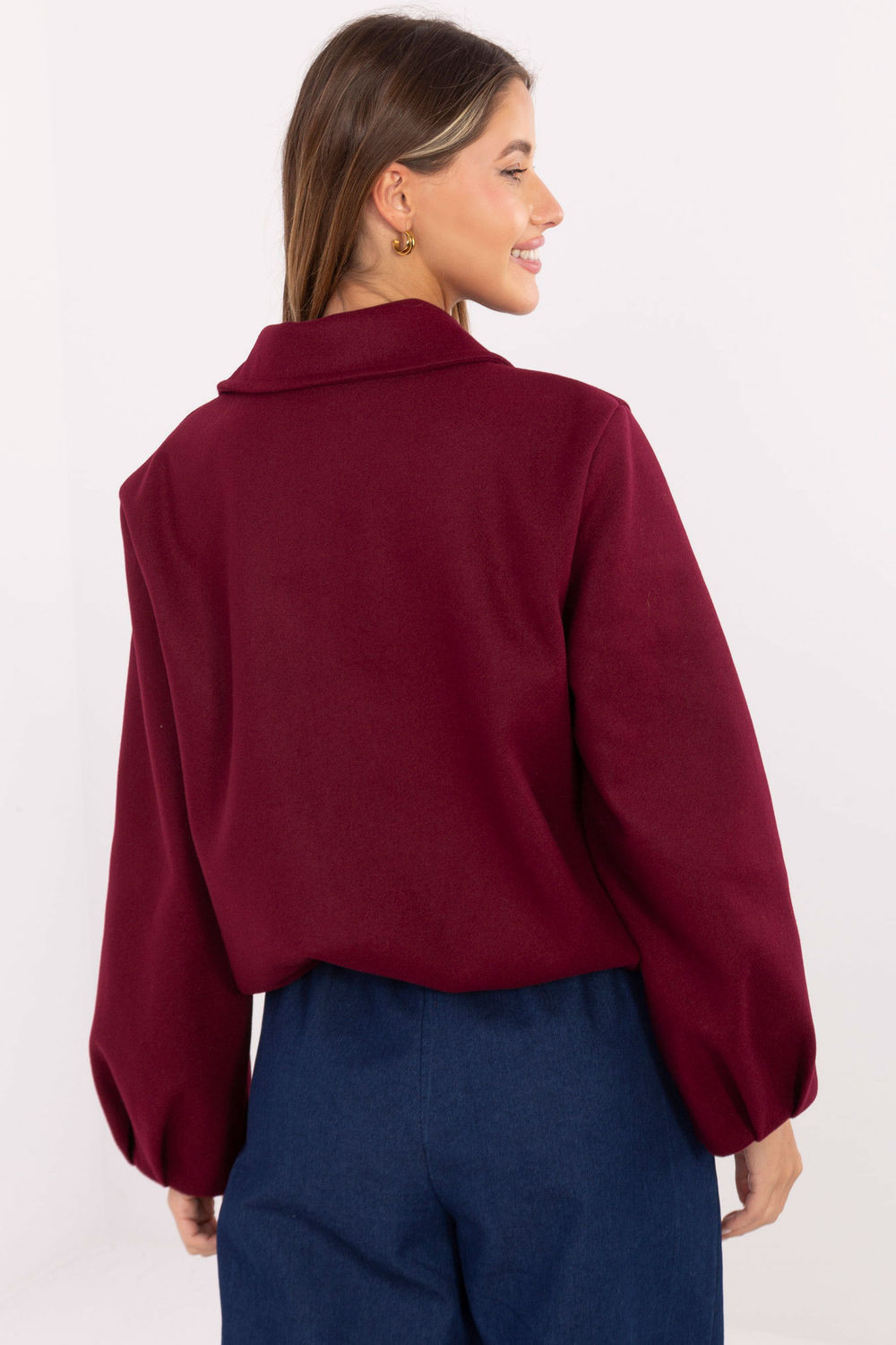 Lehká přechodná bunda v moderním, trochu volnějším střihu typu balón, vyrobena z vysoké kvality polyesteru. Model má kratší střih, dlouhý rukáv a praktické zapínání na zip, díky čemuž je pohodlná a funkční na každodenní nošení. Bundu má límec a podšívku, co zvyšuje pohodlí užívání a dodává jí pečlivé dokončení. Charakteristické nafouklé rukávy dodávají siluetě moderní, lehce nonšalantní vzhled. V hladkém vzoru skvěle ladí s casual stylizacemi, bude se skvěle hodit v podzimní-zimní-jarní sezóně jako stylová bunda na každý den.