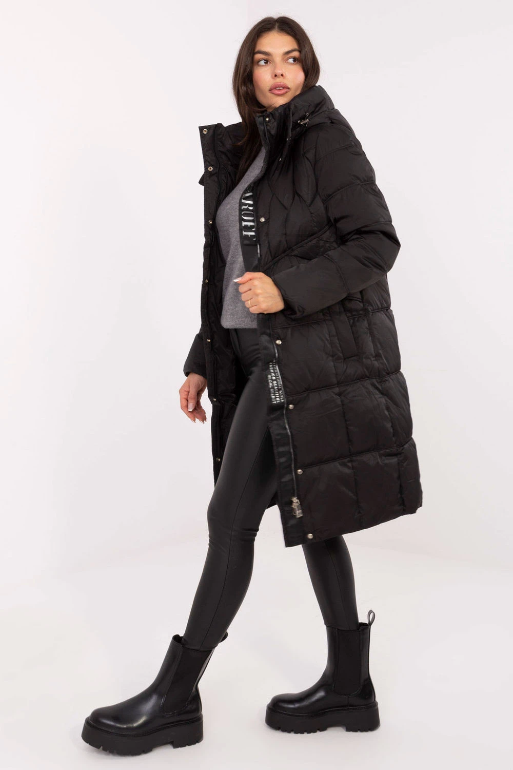 Tato dámská zateplená bunda je spolehlivou volbou na chladné dny podzim/zima. Vyrobená z odolného polyesteru, je lehká a zároveň odolná proti větru a vlhkosti. Díky syntetickému plnění a podšívce s izolací poskytuje vynikající tepelnou izolaci a pohodlí i při nízkých teplotách. Model s delším střihem účinně chrání před chladem a štíhlá struktura dodává bundě módní, ženský charakter. Kapuce s možností nastavení poskytuje další ochranu proti větru a dešti. Bundu lze zapínat na zip a suchý zip, co zajišťuje plnou uzavřenost a pohodlí při nošení. Díky zapínacím kapsám je model praktický a ideální pro každodenní outfit, skvěle se hodí jak do práce, tak na procházky.