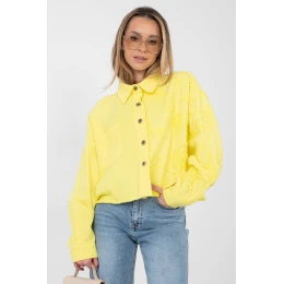 Elegantní dámská denimová bunda v casual stylu, ideální na každý den. Vyrobená z vysoce kvalitní bavlny, poskytuje pohodlí a univerzální charakter. Model s krátkou délkou s klasickým límcem a dlouhým rukávem, zapínáním na knoflíky. Spodní lem bundy je zdobený moderním roztržením, které dodává celku lehce rockový nádech. Originalitu dodávají vyšívané květiny umístěné na levé straně bundy vpředu, na rukávu a na zádech, vytvářející efektní a ženský detail. Praktická kapsa na pravé straně na úrovni hrudníku zdůrazňuje užitný charakter modelu. Skvělá volba pro každodenní outfit, ať už s šaty, džínami nebo suknicí.