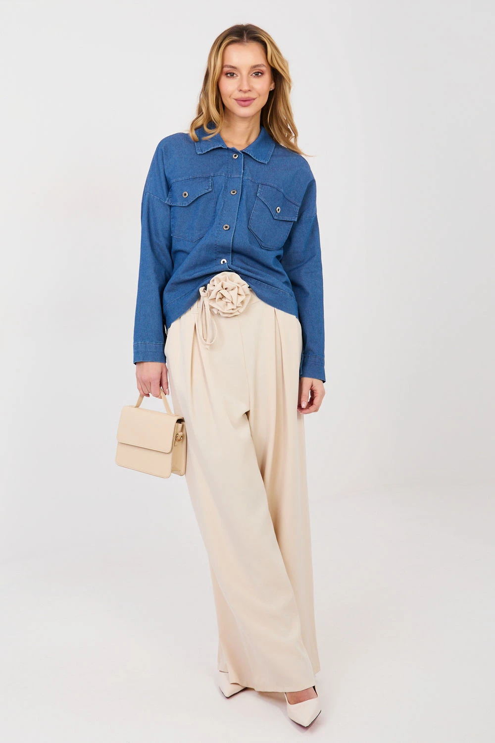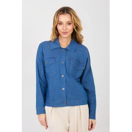 Klasická dámská jeansová bunda v casualovém stylu, ideální pro každodenní outfit. Model se zapínáním na knoflíky, s klasickým límečkem a dlouhým rukávem, který se hodí po většinu roku. Hladký vzor zdůrazňuje univerzální charakter bundy a umožňuje snadné kombinování s různými kousky oblečení. Bunda je vyrobena z vysoce kvalitní bavlny s přídavkem elastanu a polyesteru, co zajišťuje pohodlí nošení, elasticitu a skvělé přizpůsobení postavě. Standardní délka zaručuje pohodlí a nadčasový střih. Vepředu jsou praktické kapsy s klopami na hrudi, které přidávají funkčnost a zdůrazňují klasický jeansový styl. Skvělá volba na každý den do práce, na procházku nebo setkání v uvolněné atmosféře.