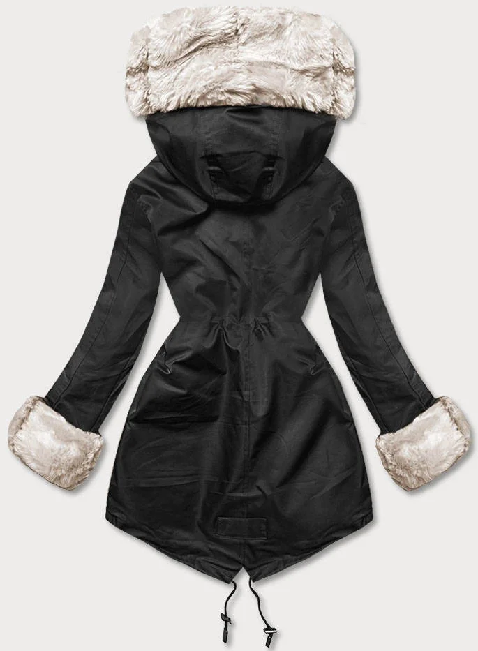 Bunda parka v černo-ecru barvě s kožešinovou odepínací podšívkou (5M763-392)