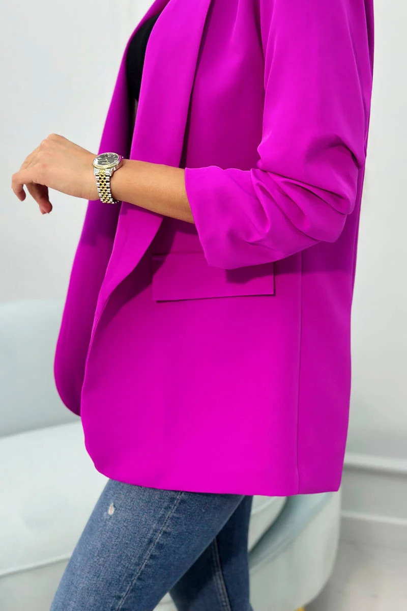 Představujeme vám elegantní sako. Sako bez zapínání s klopami vpředu. Tento model bude skvělou volbou pro mnoho typů postav, dodávající každému outfitu nenucenou eleganci. Je to základ každého šatníku a prvek stylizace pro speciální příležitosti - na každé roční období a na každou příležitost. Sako je vyrobeno z vysoce kvalitního materiálu. Sako má podšívku. Velikost je univerzální a bude vhodná pro dámy ve velikosti S, M a L.