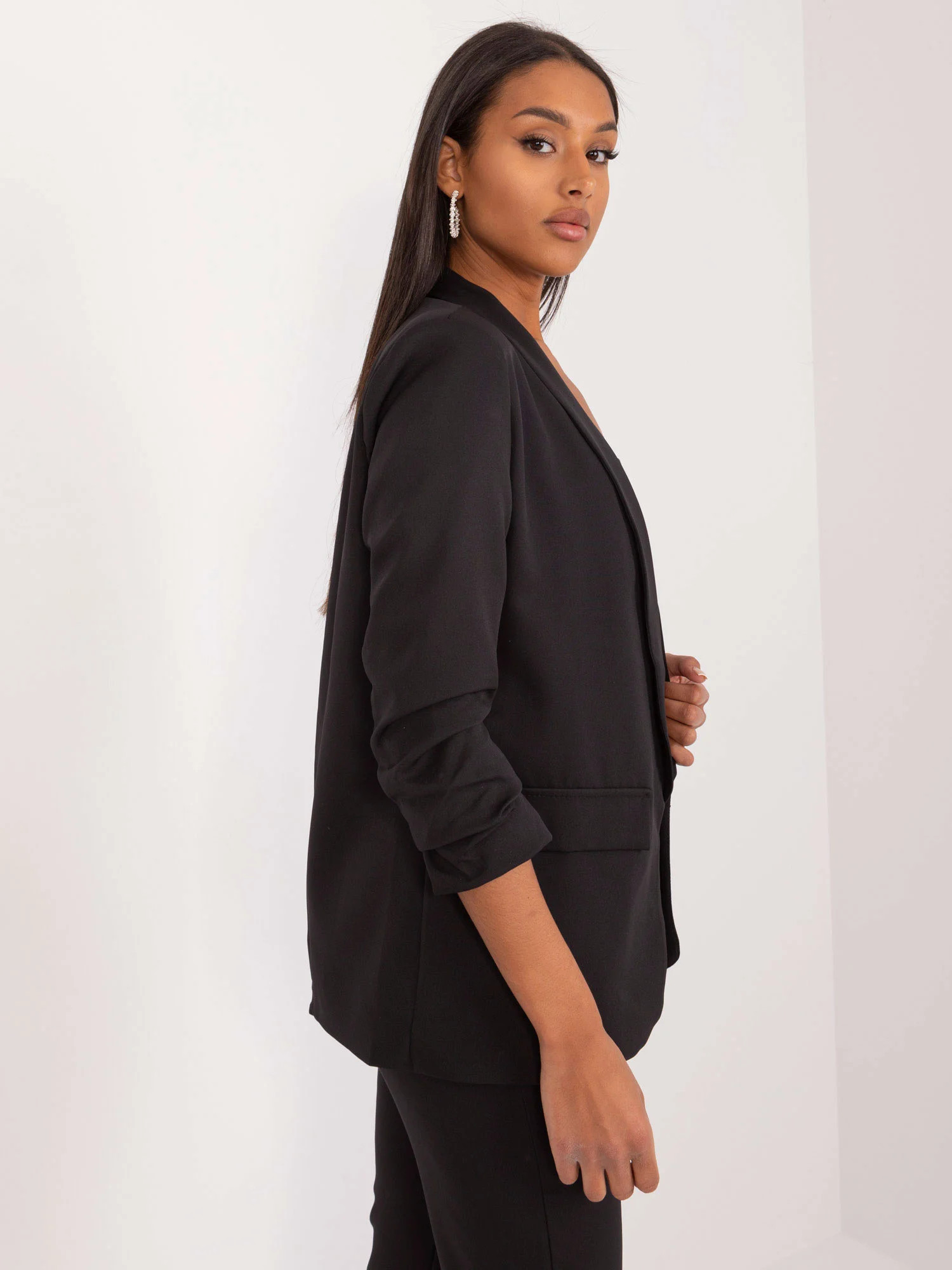 Modelka má na sobě velikost S. Rozměry modelky: výška 177 cm, prsa 94 cm, pas 70 cm, boky 99 cm.