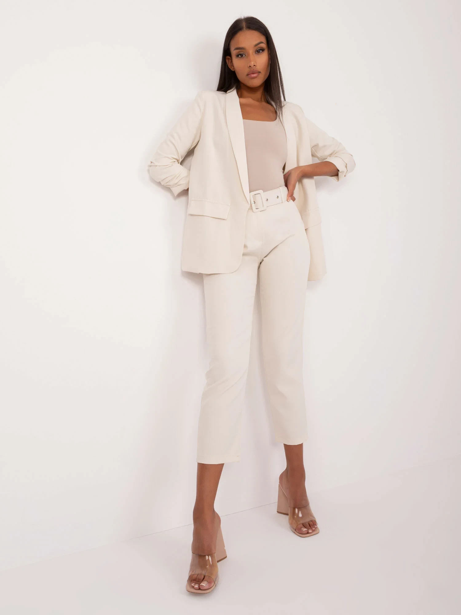 Modelka má na sobě velikost S. Rozměry modelky: výška 177 cm, prsa 94 cm, pas 70 cm, boky 99 cm.