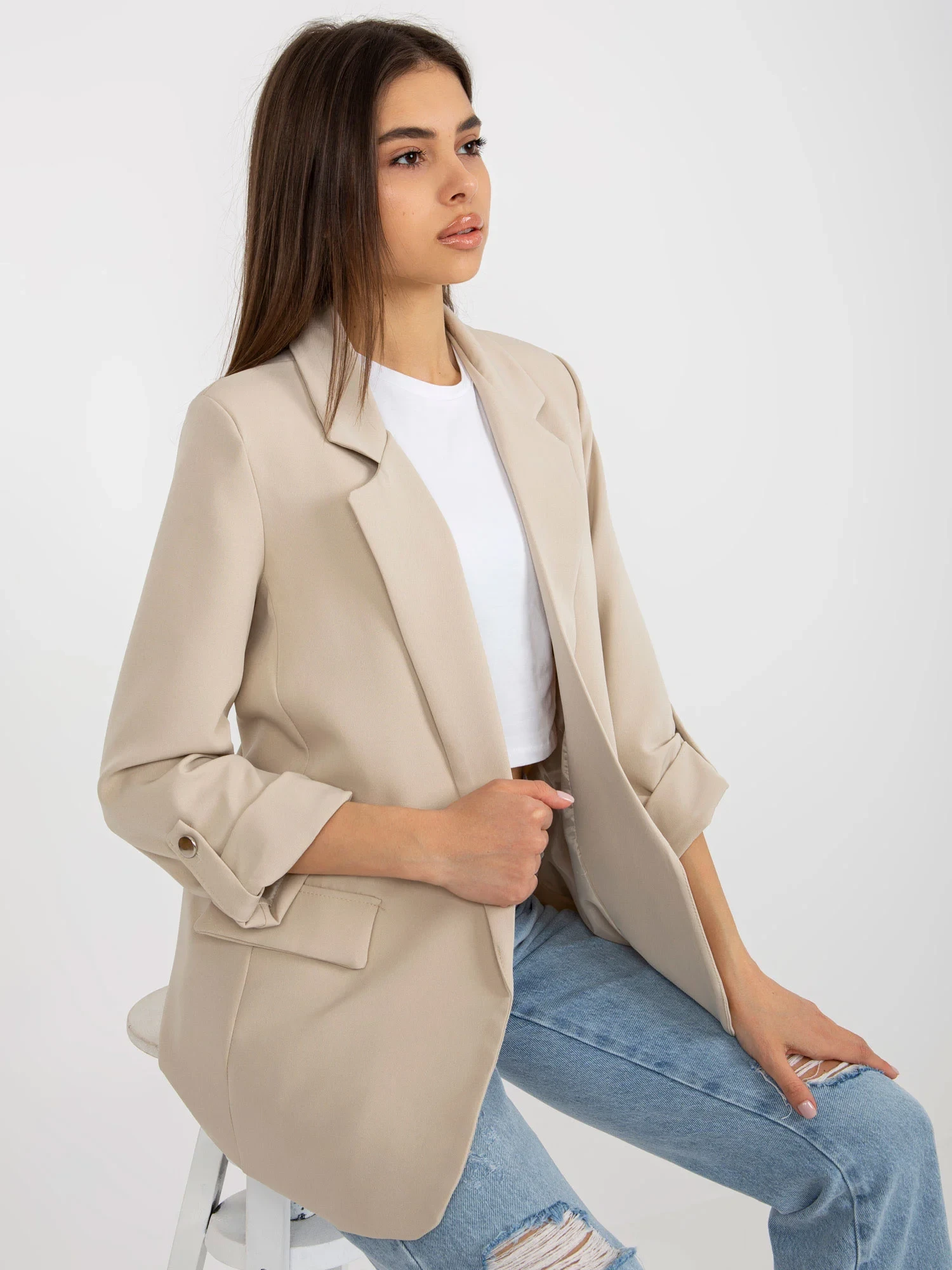 Světle béžové sako s ohrnutými rukávy OCH BELLA .