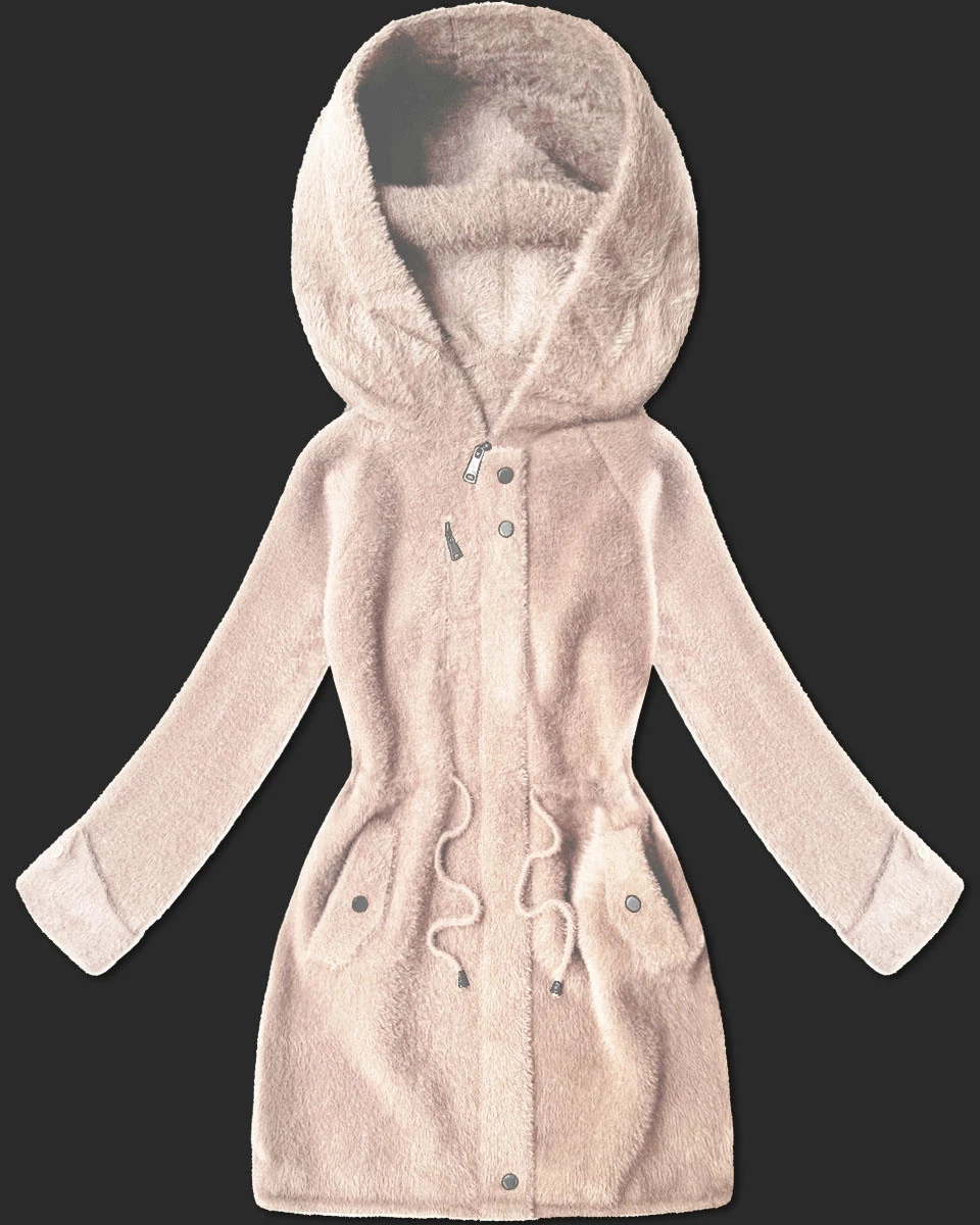 bunda typu alpaka v lososové barvě s kapucí model 21482435 - MHM