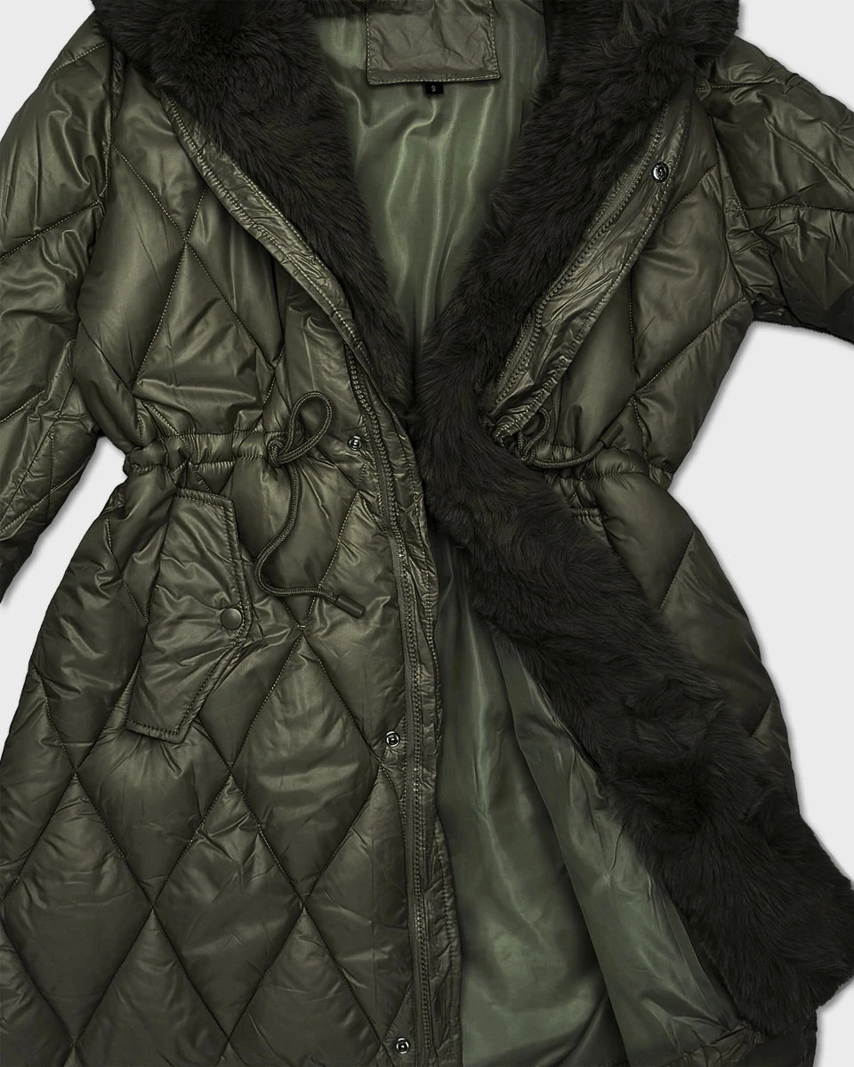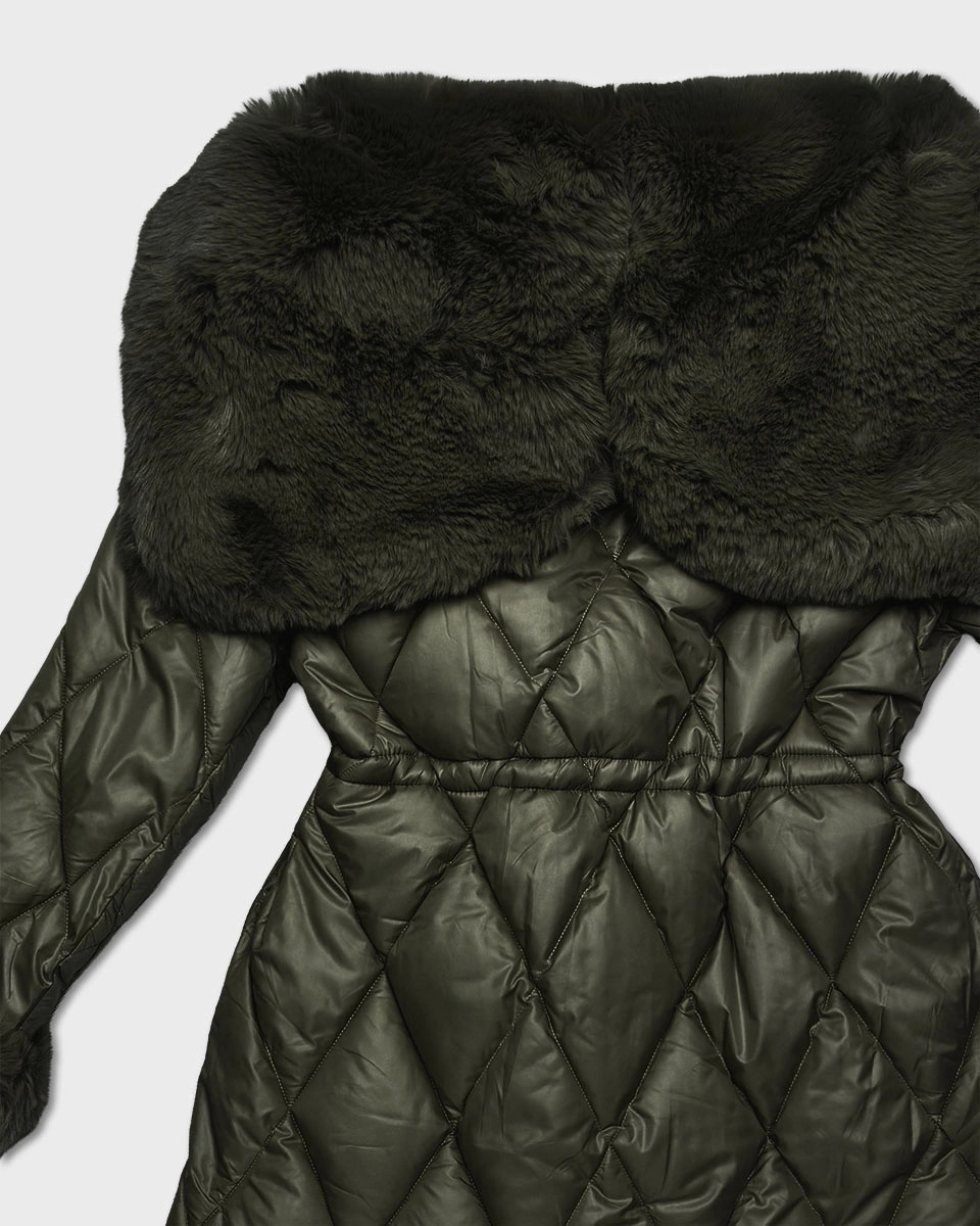 Bunda v khaki barvě s kožešinovou kapucí, která tvoří límec (T3-2635#-22)