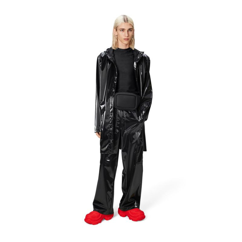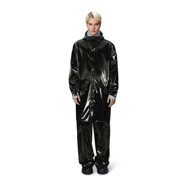 Ta kurtka przeciwdeszczowa to dłuższa wersja klasycznej kurtki Rains. Posiada zapięcie na zatrzaski, kaptur z wbudowaną czapeczką oraz dwie boczne kieszenie zapinane na zatrzaski. Rękawy zapinane są na zatrzaski, dzięki czemu można je regulować, dopasowując do sylwetki.
