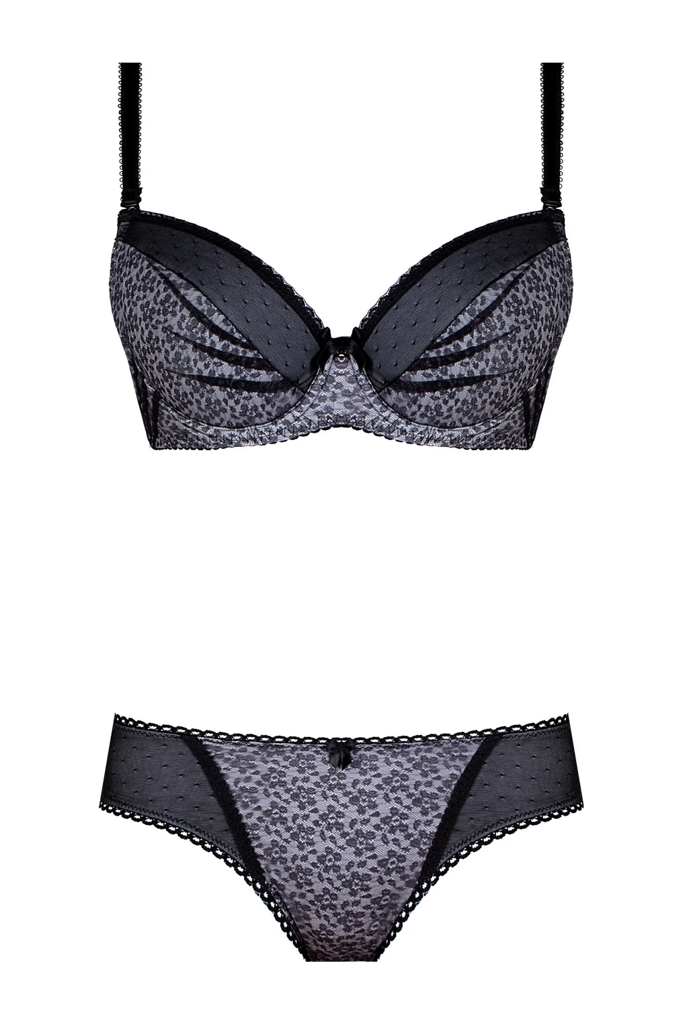 Šedá je barva, která v sobě skrývá jistou dávku tajemna. V duetu s květinovým vzorem působí opravdu elegantně a romanticky. Podprsenka, jak se na model push up sluší, má vyjímatelné vložky. Dokonale pozvedne ňadra, pěkně je vytvaruje a hlavně zdvojnásobí jejich objem, čímž vytvoří smyslný dekolt. Dalšími přednostmi jsou ozdobná, nastavitelná, odepínací ramínka a podšití ve spodní části a na bocích. Detailní detaily, smyslné barvy a rafinované výšivky dělají tento model jedinečným.
