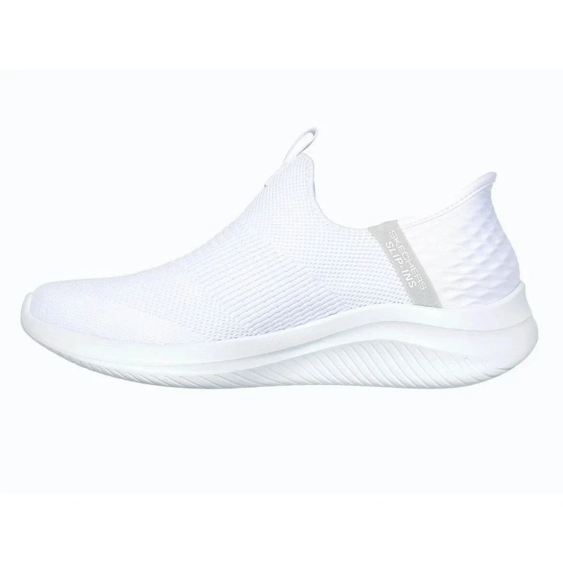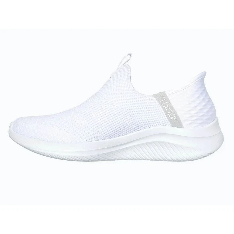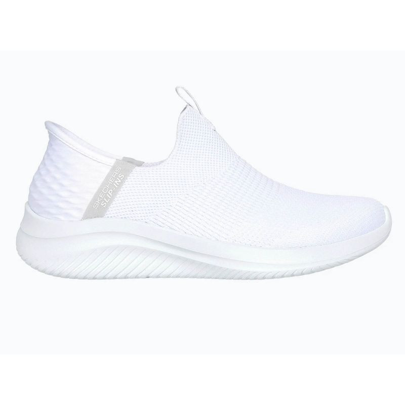 - Skechers Ultra Flex 3.0 – Cozy Streak w wersji białej to nowoczesne, lekkie obuwie, które założysz bez użycia rąk dzięki systemowi Slip-Ins.
