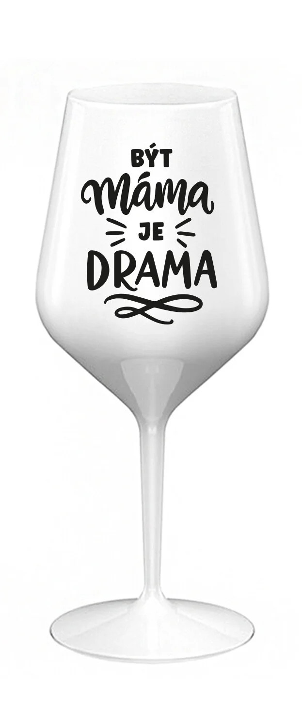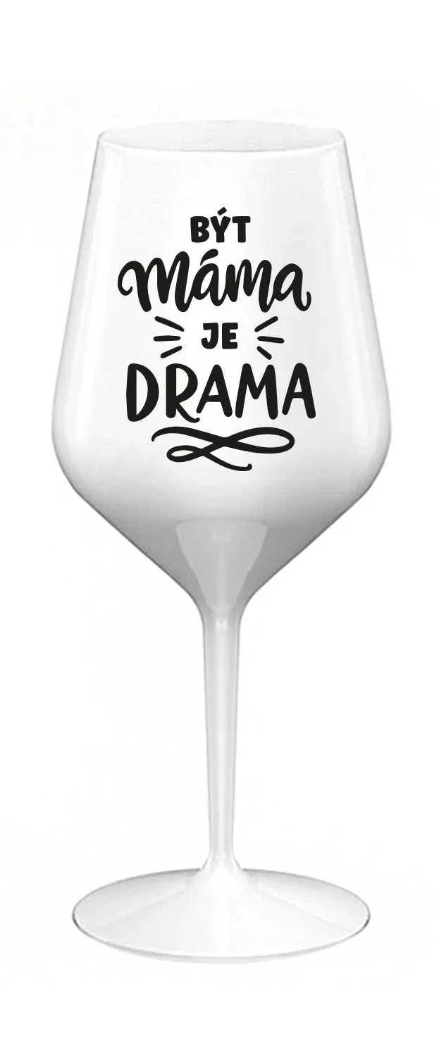BÝT MÁMA JE DRAMA - bílá nerozbitná sklenice na víno 470 ml