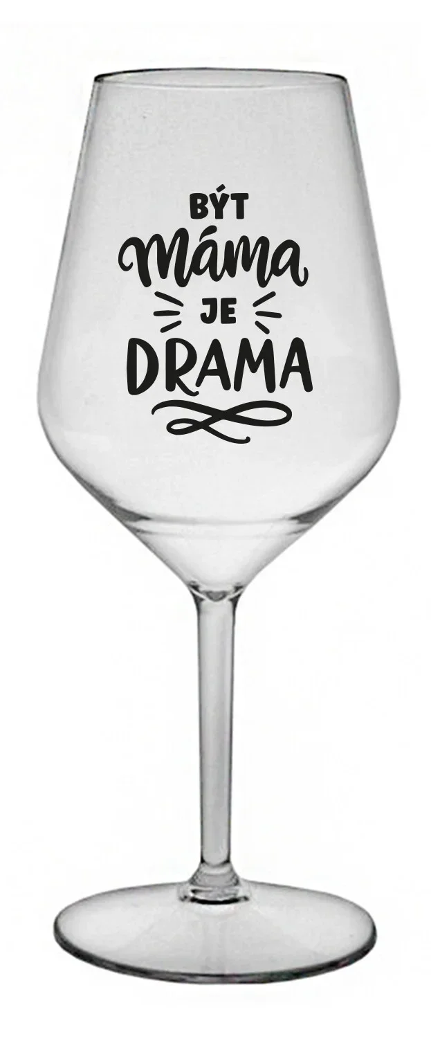 BÝT MÁMA JE DRAMA - čirá nerozbitná sklenice na víno 470 ml