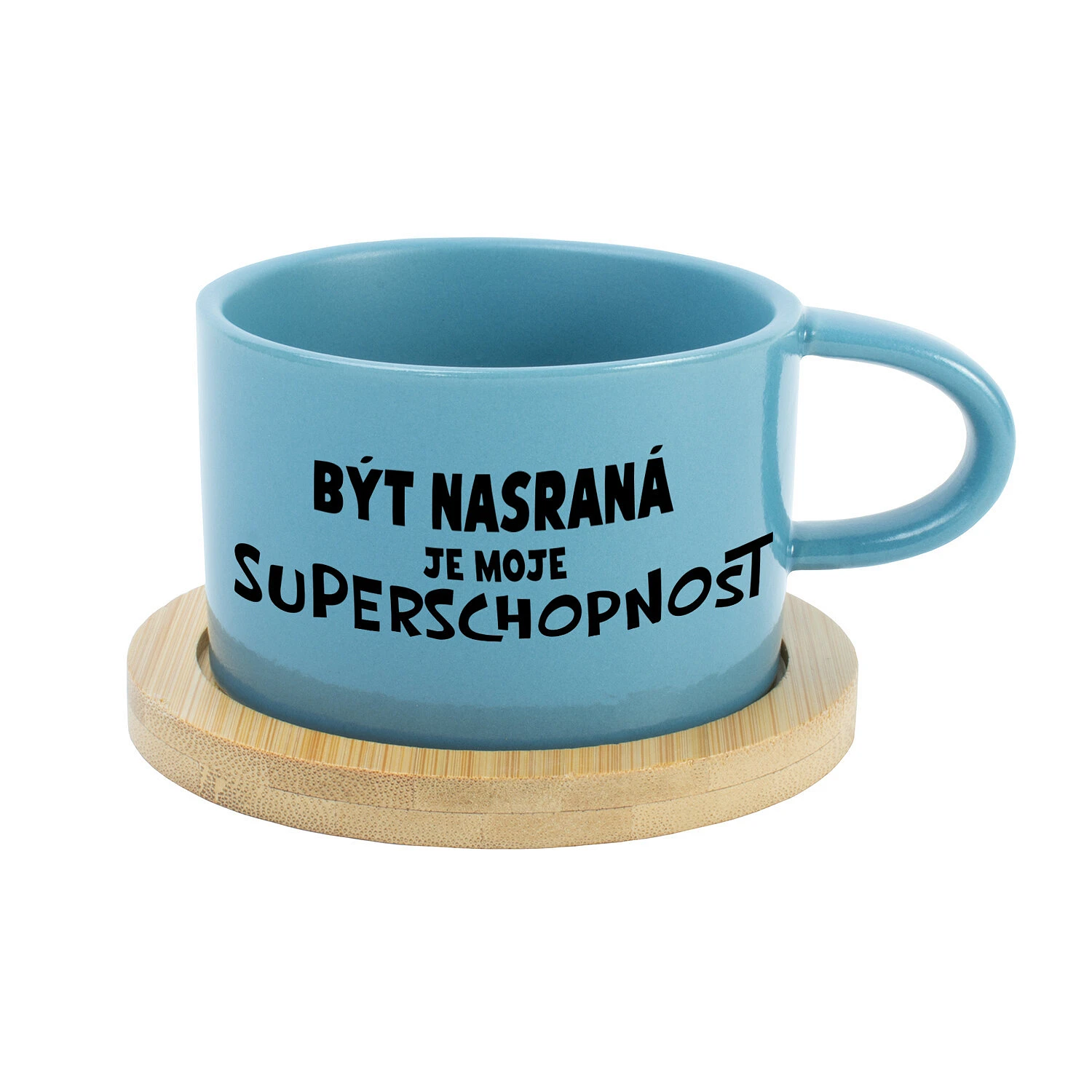 Keramický hrneček s bambusovým podtáckem – Být nasraná je moje superschopnost
