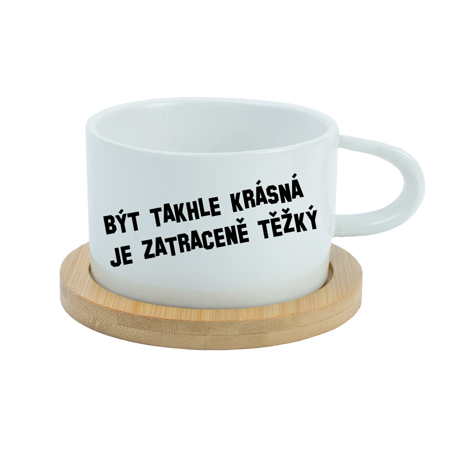 BÝT TAKHLE KRÁSNÁ JE ZATRACENÉ TEŽKÝ - bílý hrníček makronka 200 ml