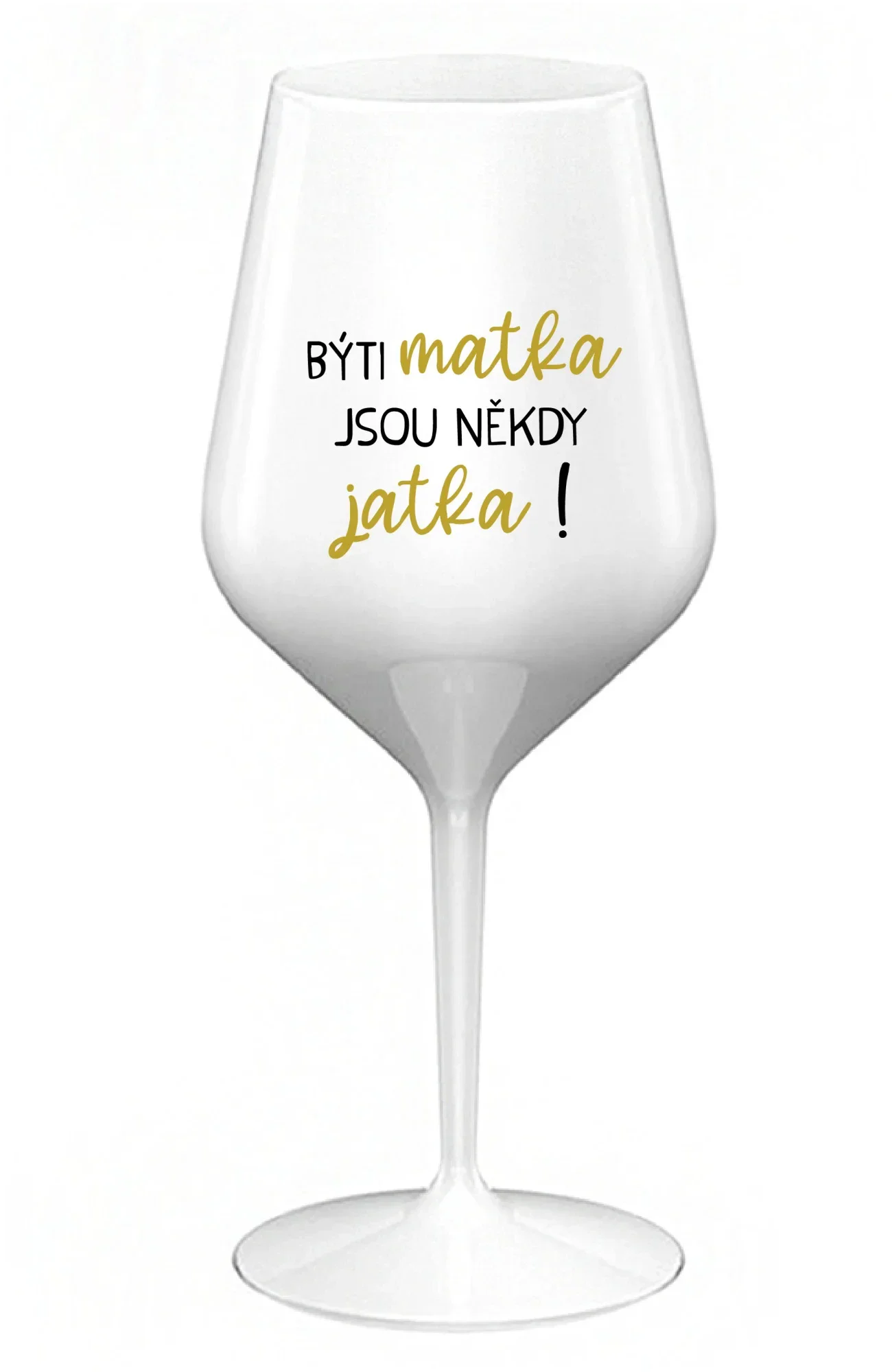 BÝTI MATKA JSOU NĚKDY JATKA! - bílá nerozbitná sklenice na víno 470 ml