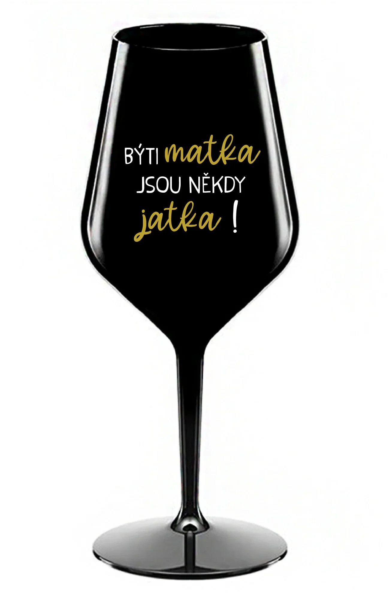 BÝTI MATKA JSOU NĚKDY JATKA! - černá nerozbitná sklenice na víno 470 ml