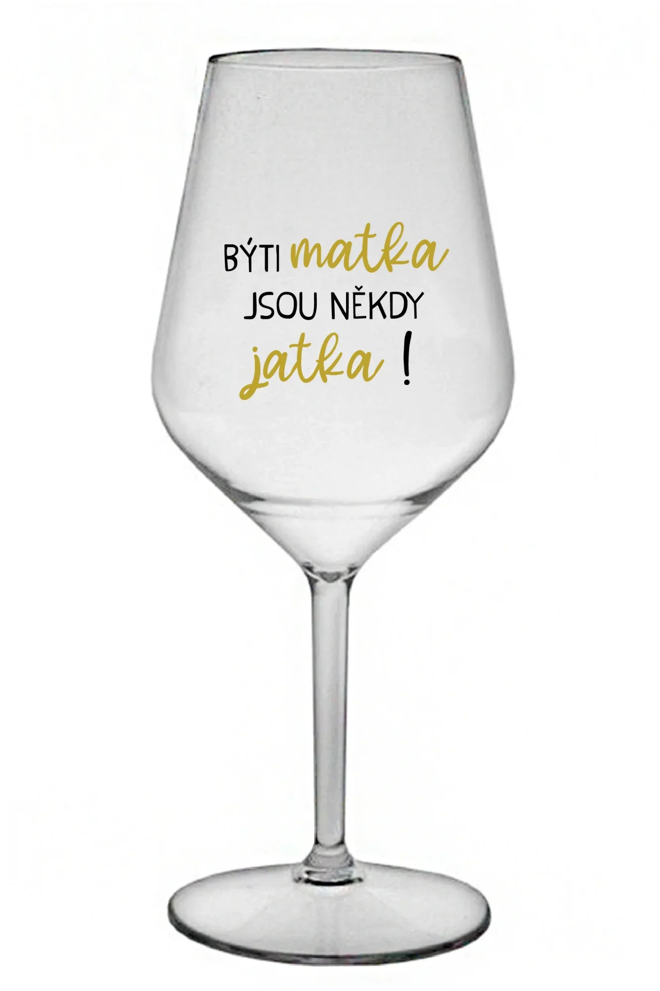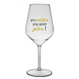 BÝTI MATKA JSOU NĚKDY JATKA! - priehľadný nerozbitný pohár na víno 470 ml