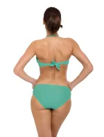 Podprsenka bandeau má vyztužené košíčky (bez push-up efektů) a košíčky s kosticemi, které tvarují dekolt a udržují prsa ve správné poloze. Ramínko za krk je odnímatelné. Plavky mají vzadu elastický pásek se zavazováním. Spodní díl je velmi pohodlný a vpředu ho zdobí bižuterní pásek. Plavky jsou vyrobeny z kvalitní italské látky, díky které jsou velmi elegantní. Vyberte si je a určitě prožijete úspěšnou dovolenou! Složení: 80 % polyamid, 20 % elastan.
