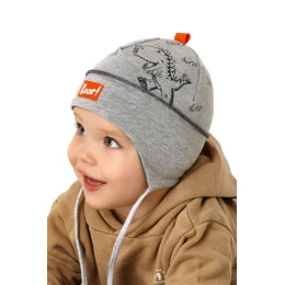 Vázaná chlapecká čepice s potiskem dinosaurů. Contr. sur. materiál: 95% bavlna, 5% elastan