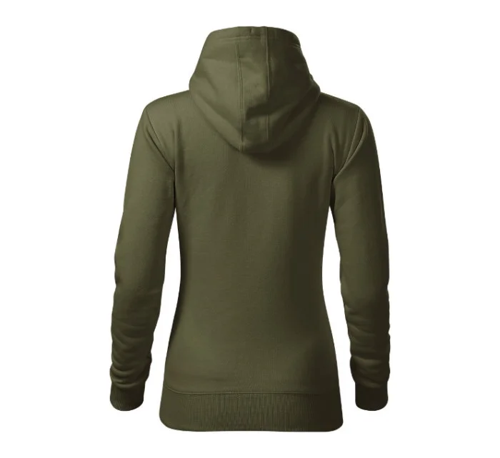 lehce vypasovaný střih s bočními švy kapuce s podšívkou, na stažení šňůrkou vnitřní část průkrčníku začištěna páskou v barvě vrchového materiálu nakládaná kapsa ve stylu klokanky dolní lem a manžety rukávů z žebrového úpletu 2:2 s 5 % elastanu vnitřní strana počesaná