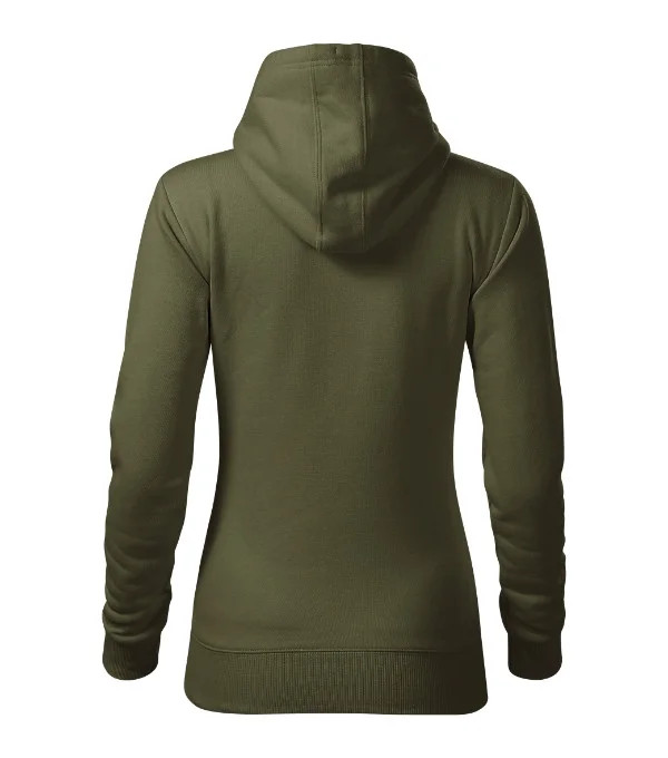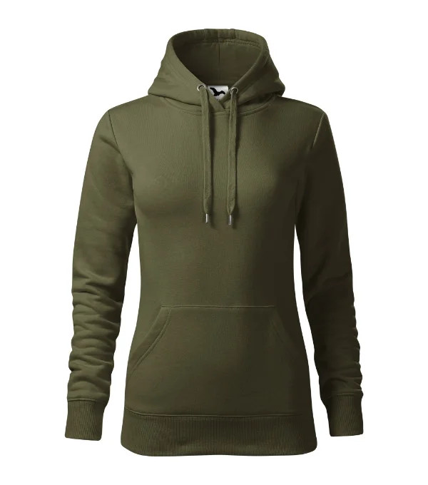lehce vypasovaný střih s bočními švy kapuce s podšívkou, na stažení šňůrkou vnitřní část průkrčníku začištěna páskou v barvě vrchového materiálu nakládaná kapsa ve stylu klokanky dolní lem a manžety rukávů z žebrového úpletu 2:2 s 5 % elastanu vnitřní strana počesaná