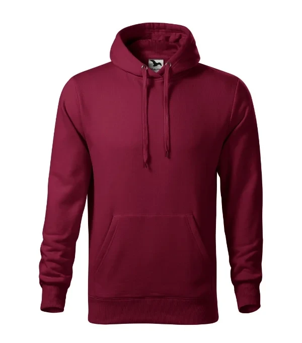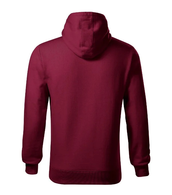 rovný střih s bočními švy kapuce s podšívkou, na stažení šňůrkou vnitřní část průkrčníku začištěna páskou v barvě vrchového materiálu nakládaná kapsa ve stylu klokanky dolní lem a manžety rukávů z žebrového úpletu 2:2 s 5 % elastanu vnitřní strana počesaná