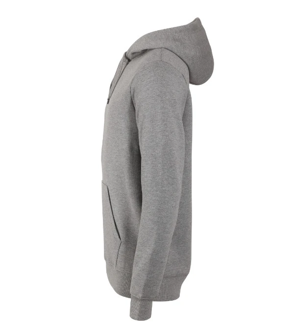 rovný střih s bočními švy kapuce s podšívkou, na stažení šňůrkou vnitřní část průkrčníku začištěna páskou v barvě vrchového materiálu nakládaná kapsa ve stylu klokanky dolní lem a manžety rukávů z žebrového úpletu 2:2 s 5 % elastanu vnitřní strana počesaná