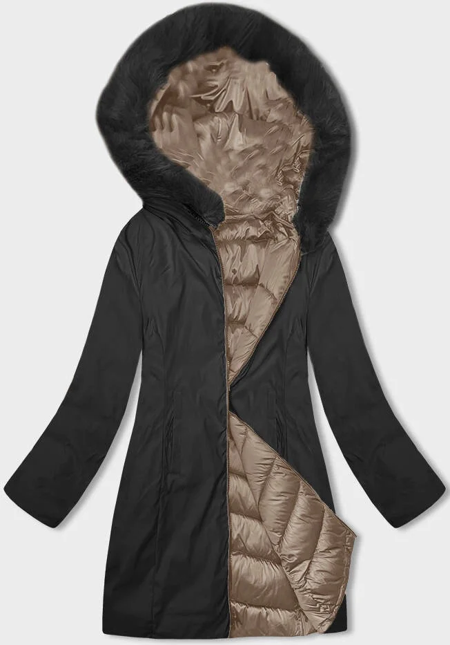 Přidání recenze k Cappuccino-černá dámská oboustranná zimní bunda s kapucí (B8202-1021)