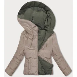 Cappuccino-khaki oboustranná krátká bunda s kapucí (B8181-12011)