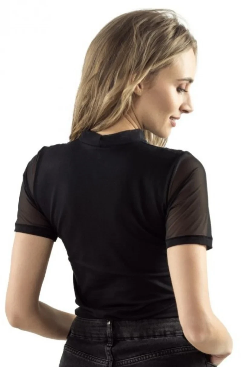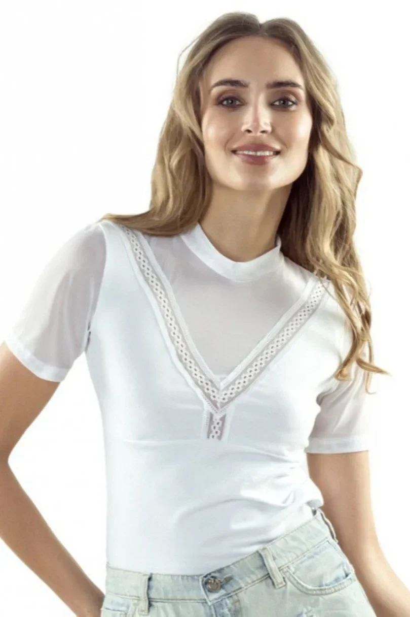 Dámská viskózová halenka s krátkými rukávy a stó. Tylový výstřih a rukávy.