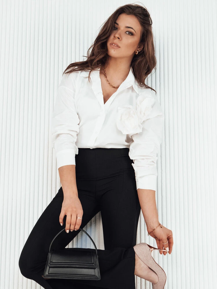 Objevte novou klasiku s touto košilí, kde se tradiční design setkává s jedinečným akcentem - květinou na hrudi. Díky zapínání na knoflíky a klasickému límečku je ideální volbou pro ženu, která oceňuje tradici s nádechem modernosti. Ideální volba do kanceláře i na zvláštní příležitosti.
