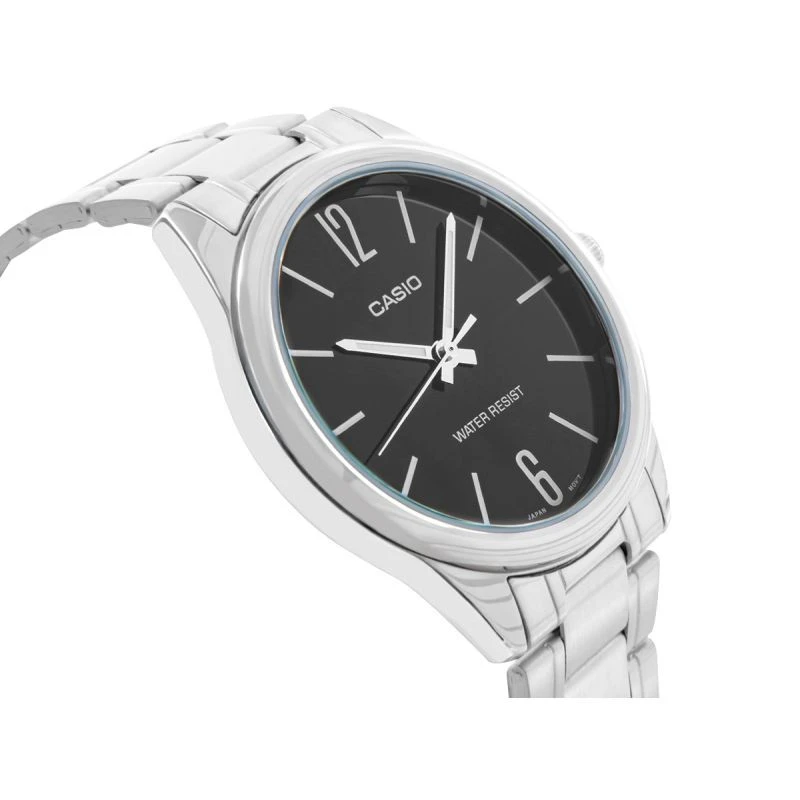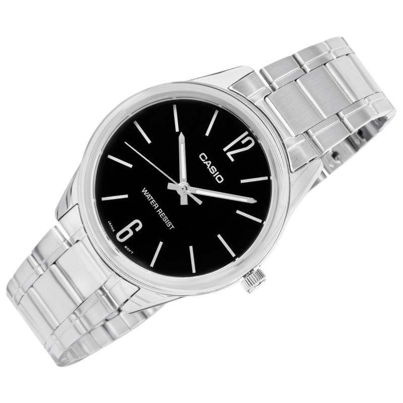 Vynikněte stylově v práci i ve volném čase s řadou elegantních hodinek Casio MTP-V005. Tyto klasické analogové hodinky CASIO mají nadčasový vzhled hodinových, minutových a vteřinových ručiček umístěných na ciferníku s jednoduchým designem. Hodinky mají elegantní černý ciferník, který působí stylově. Světlé indexy a jemné ručičky jasně vynikají na tmavém pozadí a zajišťují vynikající čitelnost. Stříbrný plášť a elegantní náramek z nerezové oceli tvoří ucelený stylový celek. Jednoduchý design, fluorescenční ručičky a odolnost proti stříkající vodě dělají z tohoto modelu CASIO ideální volbu pro každodenní nošení.