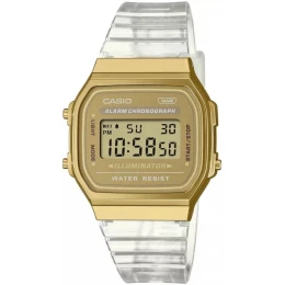 HodinkyCASIO A168XESG sází na jemný třpyt zlata, lehkost průhledného řemínku a nadčasový tvar - jinými slovy minimalismus s charakterem. Pro ženy, které mají rády styl s duší a ocení doplňky, které vyprávějí příběh.