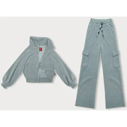 Casual komplet v mátové barvě s kalhotami typu cargo (AMG-338A)