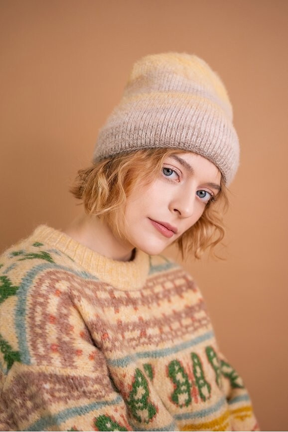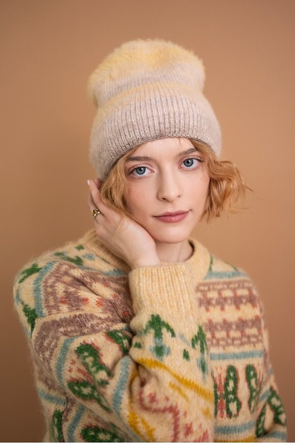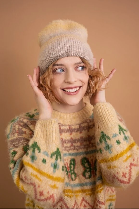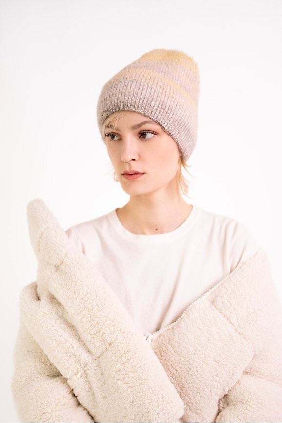 Zimní čepice klasického střihu a melanžového zbarvení