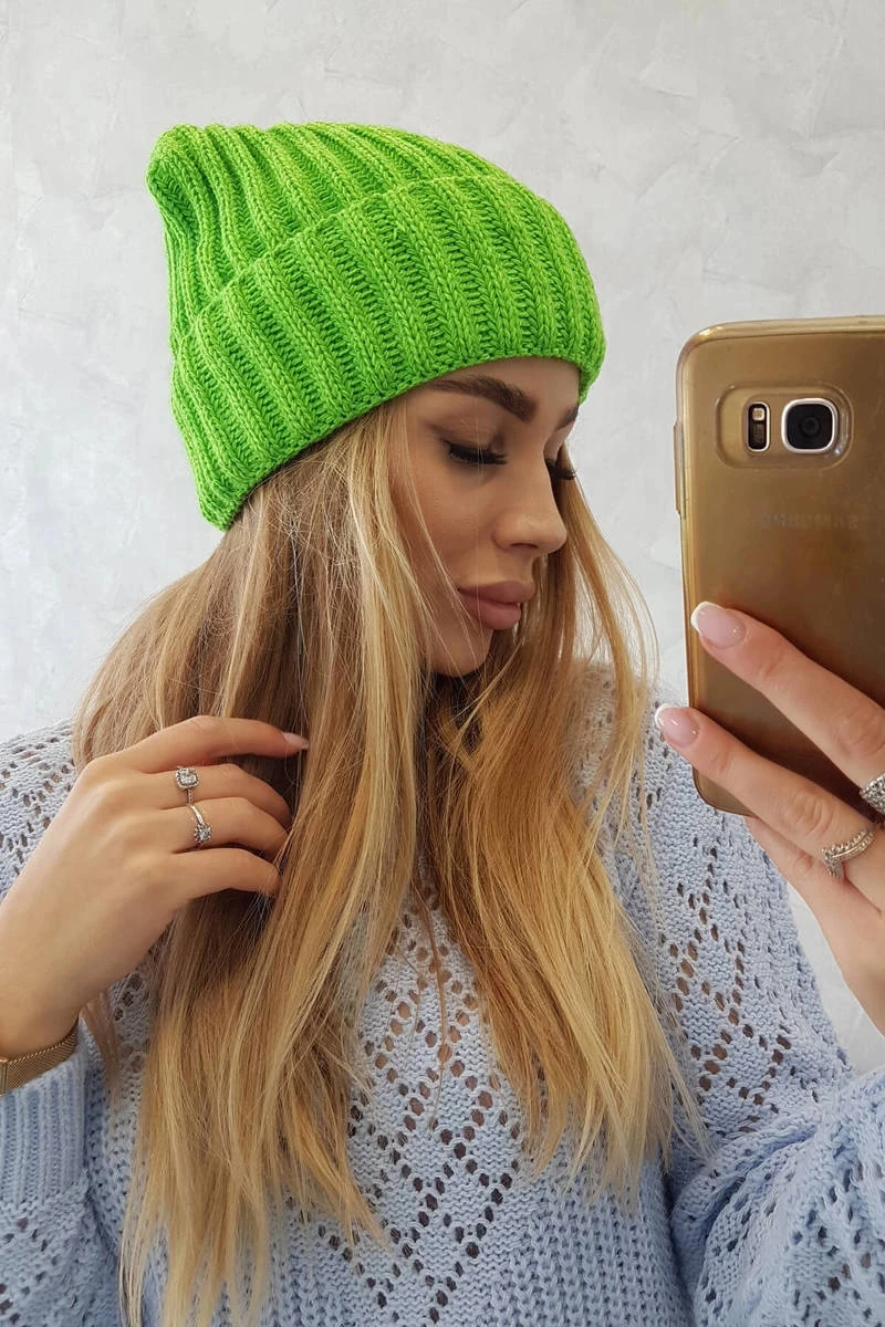 Čepice Magda s ohrnutím K293 zelená neonová