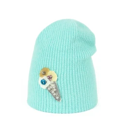 Angorská čepice v mléčných barvách. Ručně zdobená flitrovou nášivkou. Lze nosit dlouhou nebo ohrnutou. Měkká a hřejivá. Bude se hodit k mladistvému městskému stylu.