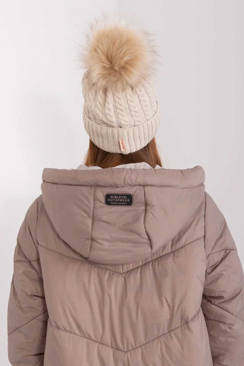 Dámská zimní čepice s ohrnutím, ozdobným plédem a bambulí.