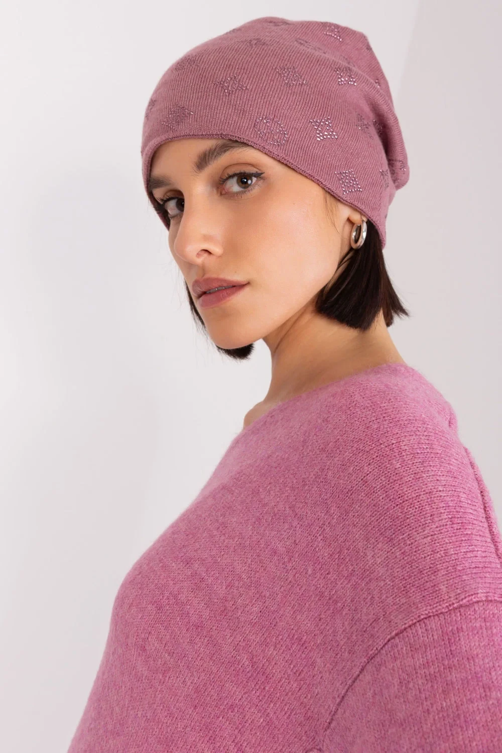 Hřejivá dámská zimní čepice z kašmíru s ozdobnou kamínkovou aplikací.