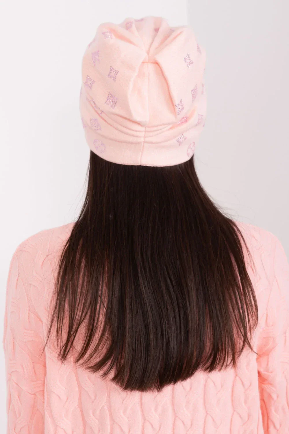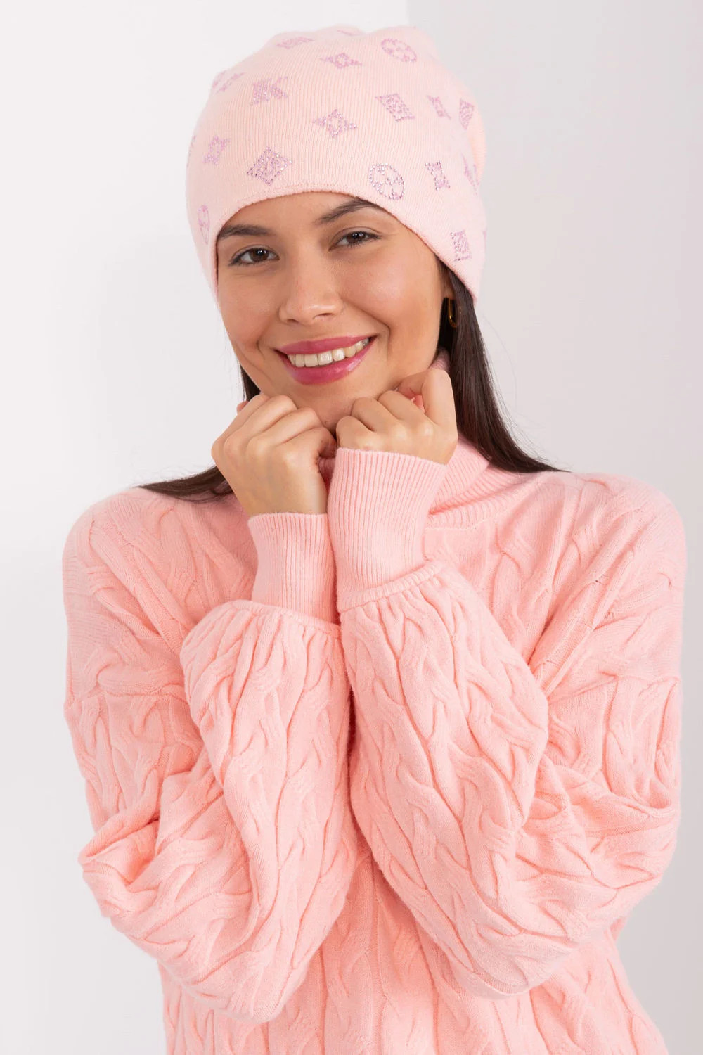 Hřejivá dámská zimní čepice z kašmíru s ozdobnou kamínkovou aplikací.