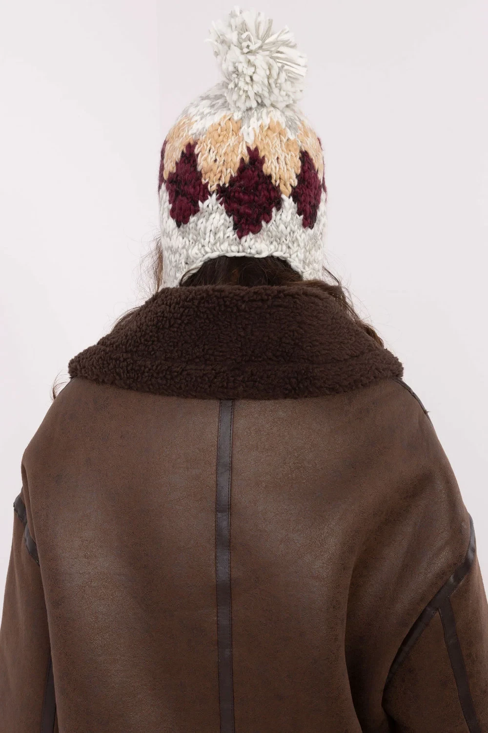 Elegantní a funkční ušatá čepice je skvělou volbou na zimní dny. Vyrobená z teplého, měkkého materiálu skvěle chrání před chladem, obepínajíc hlavu a uši. Jejím výrazným prvkem je módní geometrický vzor v diamantovém stylu, který jí dodává moderní a unikátní charakter. Střízlivé barvy v kombinaci s jemnými kontrasty zajišťují, že čepice ladí s mnoha styly. Dalším akcentem je velký, chlupatý bobeček na vrcholu, který celku dodává šarmu a dívčí eleganci. Díky klasickému střihu ušatky poskytuje čepice dodatečné teplo a pohodlí, ideální pro mrazivé a větrné dny. Toto spojení praktičnosti s módním designem je ideální doplněk pro ženy, které si váží stylu a pohodlí.