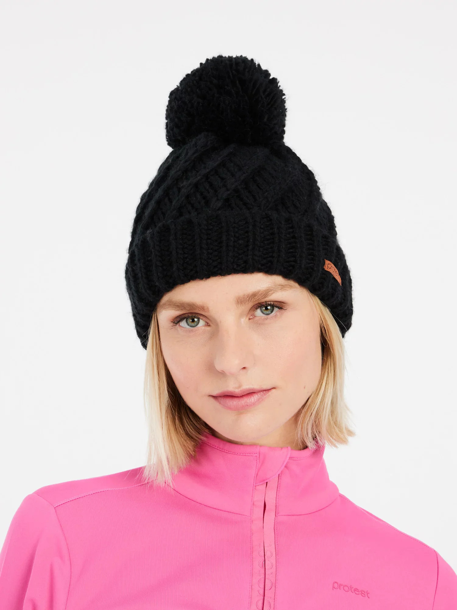 Tato čepice je vyrobena z teplé akrylové příze a má pletený jakardový vzor a ohrnutý okraj.