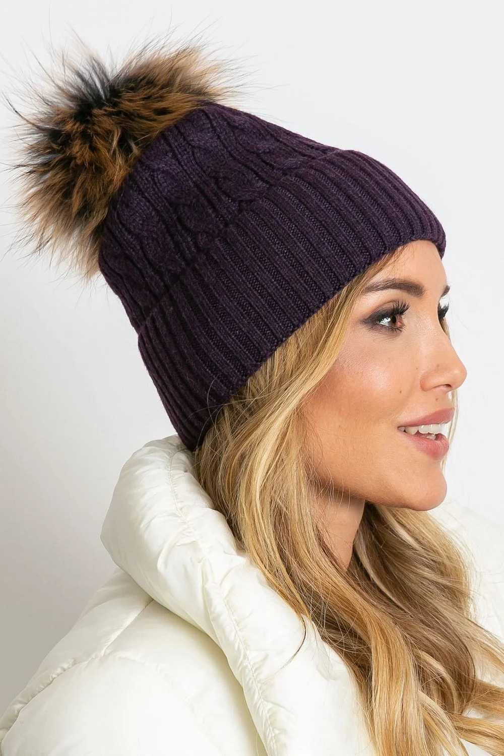 Zimní čepice s širokým lemíkem a huňatým bílým bimbem.